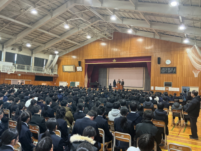 最初に生徒会歌を歌いました。