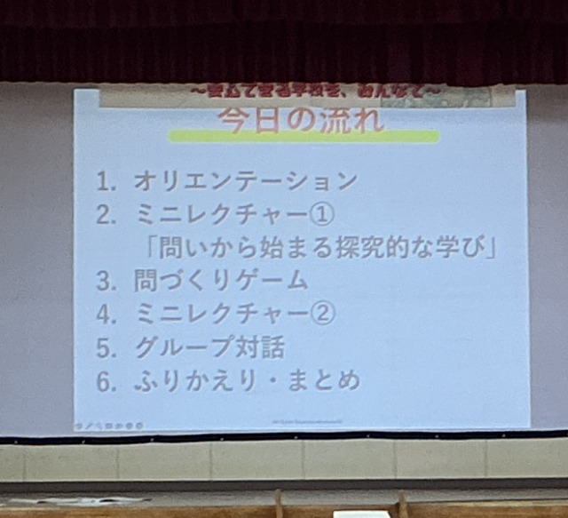 講師のお二人から本日の進め方について説明がありました。本日の課題は『できるだけたくさんの問いを考える』でした。