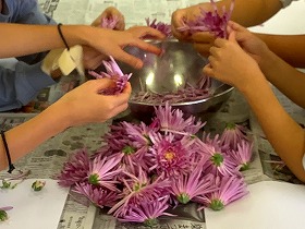 花の真ん中(苦いところ)を親指でつまみ、周りのストローのようになっている花びらだけを取りました。