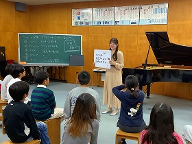 10月31日、新潟市のりゅーとぴあ音楽アウトリーチ事業で、ピアニストの片岡 菜納子さんにおいでいただき、4年生にピアノ演奏をしていただきました。