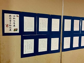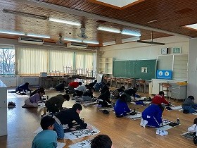 1月15日、全校で書き初め大会を行いました。1,2年生は硬筆、3~6年生は毛筆で学年ごとの課題を書きました。子どもたちは一筆一筆に集中し、良い作品ができました。
