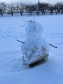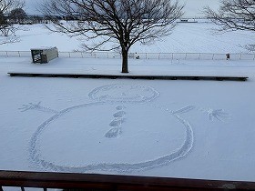 グラウンドにも、子どもたちが作った雪だるまがありました。