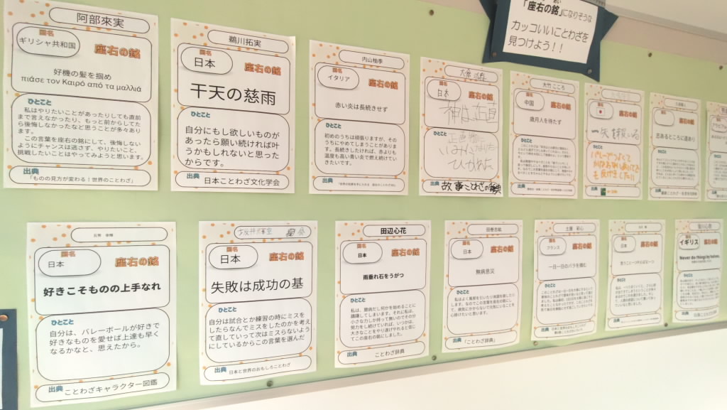 【今日の臼井中学校】 図書室の前に3年生が自分で考えた座右の銘が掲示してあります。これは、全校読書の時間に世界中の良い言葉が書かれている本をいろいろ読んで、自分なりの座右の銘にしたものです。ひ …