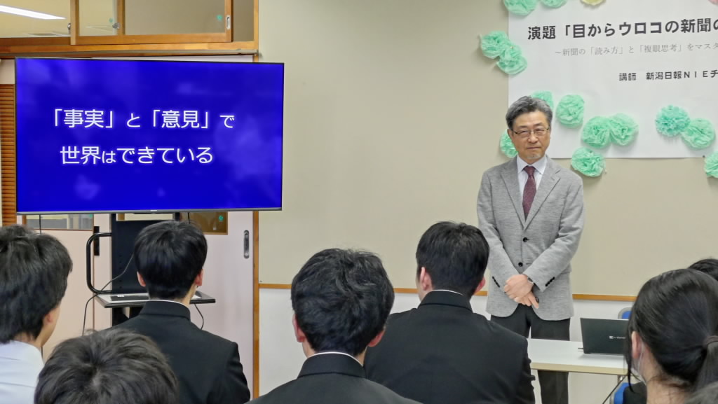 【今日の臼井中学校】 NIE特別出前授業として、新潟日報NIEチーフアドバイザーの木村隆様よりご来校いただき「目からウロコの新聞の読み方~新聞の「読み方」と「複眼思考」をマスターしよう~」のテ …