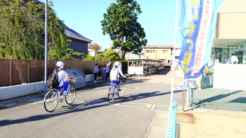 この日は、生徒会のあいさつ運動も生徒玄関前で行われました。さわやかな秋空の下で、さわやかな一日のスタートになりました。