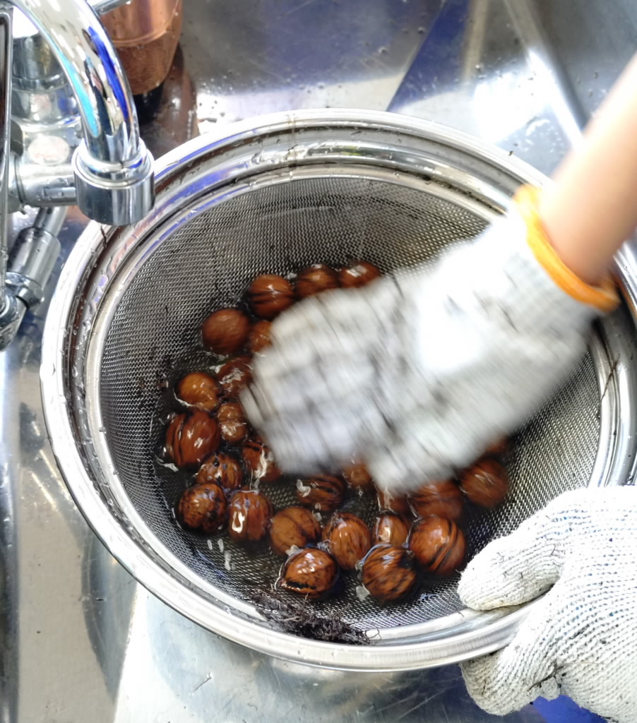 文化部でクルミの下処理を行っていました。聞くところによれば、昔はどこの家庭でもクルミを拾ってきて、下処理を行ってからストーブで軽く煎って食べたそうです。先日の実習で作ったシフォンケーキにクルミを入れたそうですが、自分で下処理をして作ったクルミが入れば、味も格別になることでしょう。何事もやってみなければわかりませんよね。