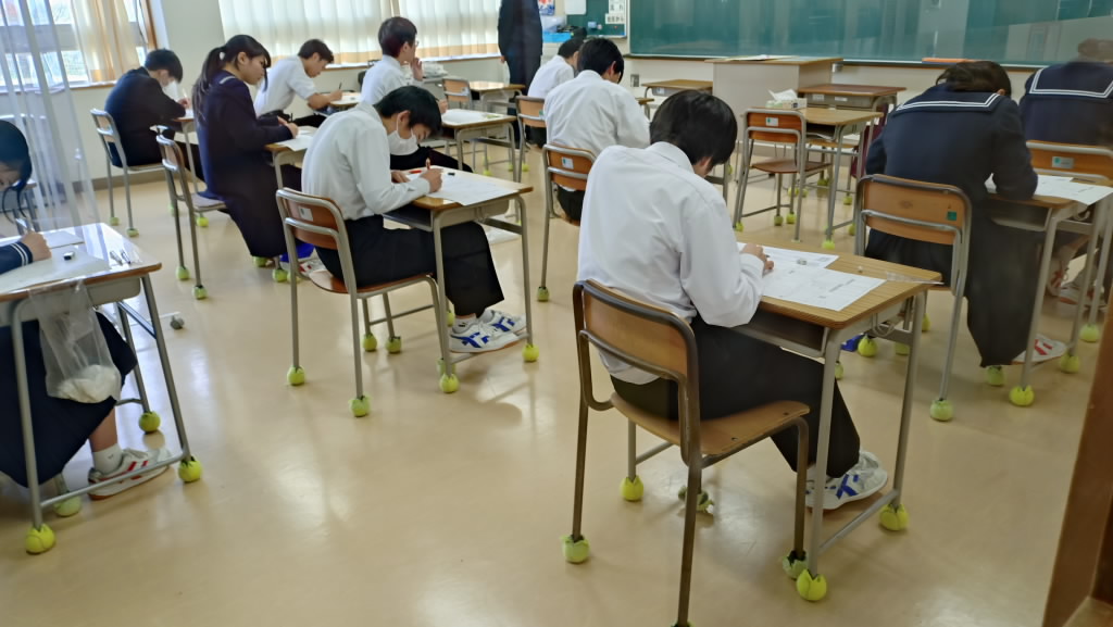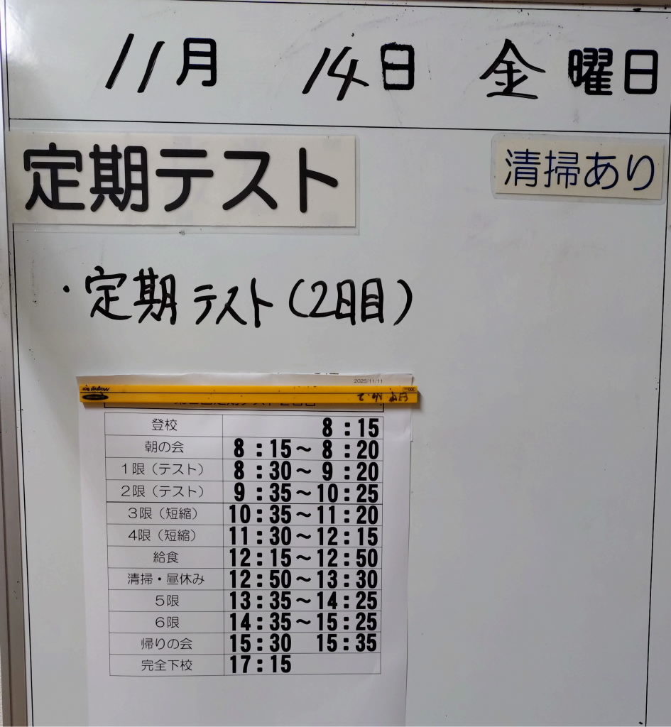 2学期定期テストの1日目です。いつもとは異なるピリッとした空気の中で、真剣な表情で取り組んでいます。今日予定されていた3教科を終えて、「あぁ~疲れた~」との声が教室から漏れてきました。明日の二日目は2教科が予定されています。