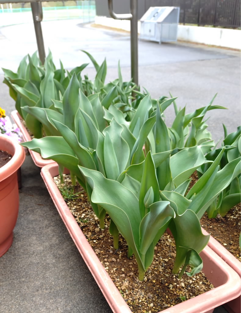 こちらはチューリップの球根です。だいぶ元気に葉が茂ってきました。中にはつぼみが伸びて、だいぶ膨らんできた株もあります。本格的な春は目の前です。