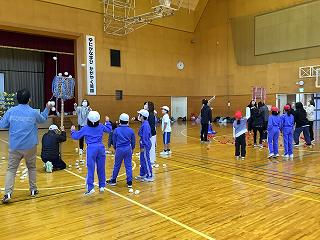5時間目に学年PTA行事「ミニ運動会」がありました。はじめは男女対抗玉入れ。おうちの方も入って、なかなかの熱戦でした。続いて、親子対抗大玉送り。最後は、障害物&パン食い競走でした。雑巾がけをした後、平 …