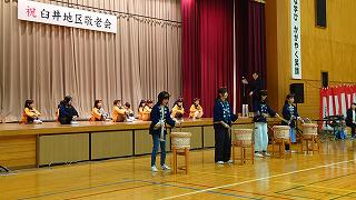臼井地区コミュニティ協議会主催による敬老会がありました。小学校からは有志の子どもたちが、樽太鼓、ポン太のハッピー音頭、越後南区大凧のまちの3つを披露しました。ステージ上の発表で少し恥ずかしそうでした …