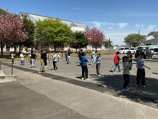 5年生が、棒踊りの発表に向けて、最終段階に入っています。今日は本番会場となる玄関前で、リハーサルを行いました。一つ一つの動きを確認しながら、演技していました。ずいぶんと上達しました。本番が楽しみです。