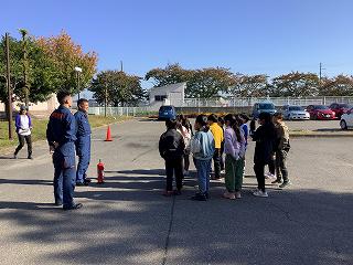 南消防署の消防士さんを講師にお迎えして、3年生がリトルファイヤースクールを行いました。はじめに、消防の仕事についてお話を聞きました。次に、水消火器を使って消火体験をしました。大きな声で「火事だー!!」と知らせ、助けを呼ぶことが大切だと教わりました。