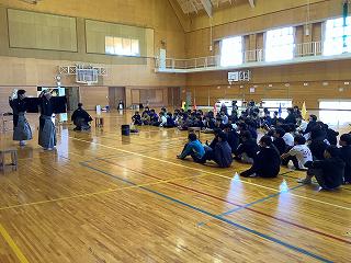 実のところ、私たちの日常生活においては、なじみの薄い「狂言」ですが、なりたちや歴史、演目など、楽しく丁寧に教えてくださいました。また実際に「附子(ぶす)」という演目を披露してくださいました。子どもたちは、生で感じる迫力に圧倒されていました。