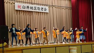 臼井地区コミュニティ協議会主催による敬老会がありました。小学校からは有志の子どもたちが、樽太鼓、ポン太のハッピー音頭、越後南区大凧のまちの3つを披露しました。ステージ上の発表で少し恥ずかしそうでしたが、上手に発表していました。参加されていた地域のおじいちゃんおばあちゃんも、喜んでくださいました。