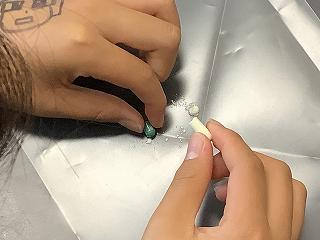 次に実際の薬を使って実験をしながら学びます。カプセルの中身はこんなふうになっているんだ、黒い薬もあるんだな、など、初めてわかることがたくさんありました。