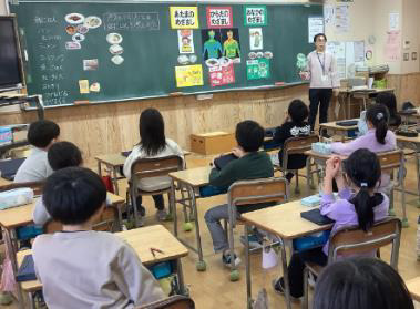 12月17日 黒埼給食センター栄養教諭による食育が行われました。朝ごはんを食べると、頭・体・おなかのめざましになるので、元気に過ごすために、バランスのよい朝ごはんを食べるとよいことを子どもたちは学びまし …