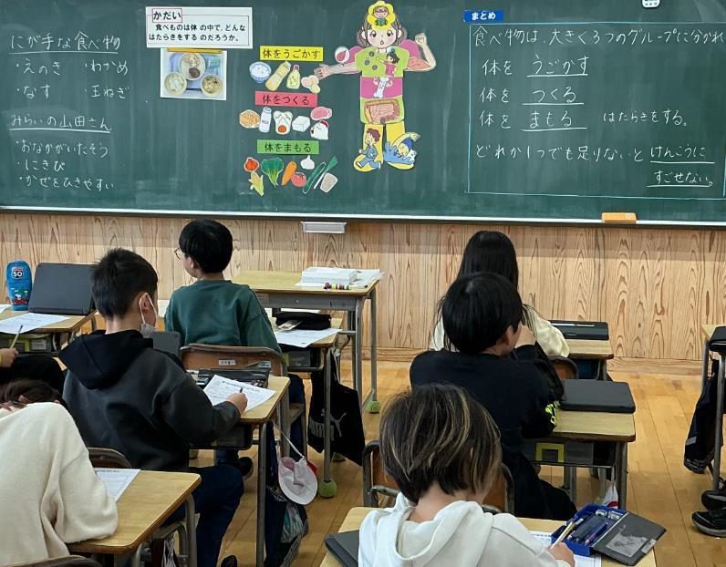 黒埼給食センターの栄養教諭と共に、食育の授業を行いました。苦手なものを食べないと大人になってからの体はどうなってしまうのか紙芝居で学習したり、当日の給食の食材を3つの働きのグループに分けたりしました …