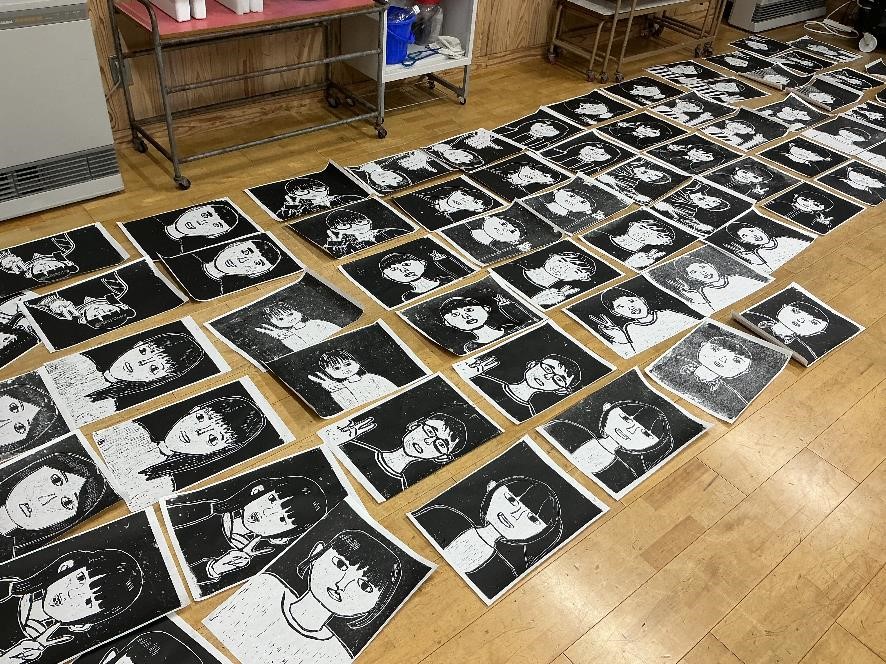 5年生最後の図画工作では、版画で自画像を彫りました。一人一人、自分の特徴をよくつかんだ作品に仕上げることができました。作品は現在、5年生前のオープンスペースや廊下に掲示してあります。