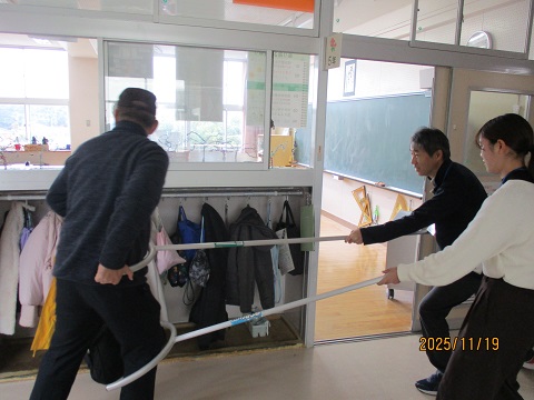 警察署の方から不審者役になっていただき、教室に不審者が入ってきたときの避難訓練を行いました。子どもたちは真剣に取り組んでいました。職員も警察署の方から適切な対応の仕方について教えていただきました。