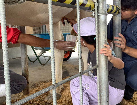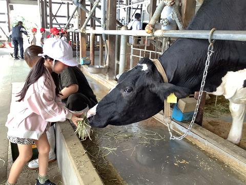 牛乳クイズをして牛乳ができるまでを学びました。実際に牛の搾乳やえさやりにも挑戦しました。