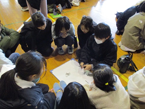 あすなろ班みんなで防災に関するクイズの答えを相談しました。