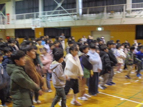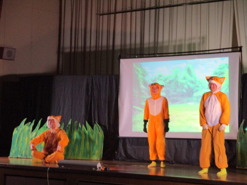 秋葉区学校支援会の皆様から矢代田に伝わる民話「キツネにだまされたあぶらげ屋」の劇を披露していただきました。小須戸や古津、兎谷など、身近な地名も出てきました。とても楽しい劇で子どもたちは身を乗り出して観劇していました。最後はみんなでキツネダンスを踊って盛り上がりました。
