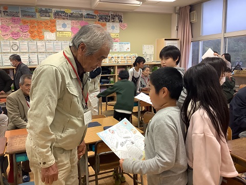 5年生は、お米作りでお世話になった方々を学校に招待して、お米感謝祭を行いました。収穫したお米を5年生がおにぎりにして皆さんと一緒に試食をしました。