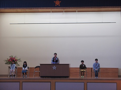 代表児童5名が新年度の目標を発表してくれました。始業式後、各学級では新しい担任や子どもたちの自己紹介があり、新しい気持ちで初日をスタートさせました。