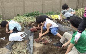 夏野菜の収穫に続き、よつば学級では2日間にわたり秋野菜「サツマイモ」の収穫をしました。サツマイモの種類は「栗かぐや」と「鳴門金時」の2種類です。子どもたちはツルを引っ張り、丁寧に土を払いながら、太く …