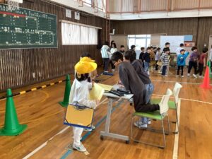 来年の春に入学する園児を迎え、就学時健診が行われました。 園児たちをお世話するのは5年生です。迷子にならないように手をつないで校舎を回ったり、待ち時間に絵本や紙芝居を読んだりして、優しいお兄さ …