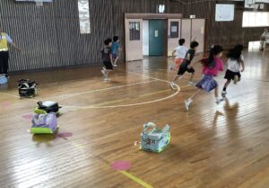 1年生は、9月12日(金)に体験型安全教室がありました! 市民生活課指導員の皆さんに来ていただき、子どもたちが自分で身を守る方法を、体験を通して学びました。 防犯ブザーの使い方や、体を軽くして逃げる練習(ノーランドセル)などを教わりました。 いざというときに自分で身を守ることができるよう、真剣に活動する姿がみられました。