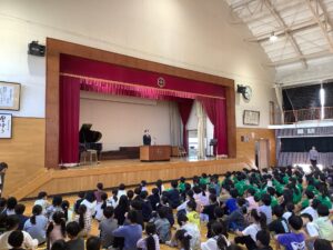 終業式では、校長先生から「なぜ勉強するのか?」と全校児童に向けて問いかけがありました。6年生から「将来の自分のため…。」などの意見が出され、学校で学ぶことの意義を考えました。前期の終わりには、通知表を持ち帰ります。ぜひ、これまでのお子さんのがんばりに温かい声をかけあげてください。そして、お子さんと一緒に前期を振り返り、後期のめあてを話し合ってみてください。