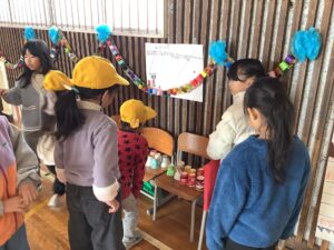 12月12日、2年生からおもちゃランドに招待してもらい、1年生はお客さんとして楽しみました! 2年生が生活科で作ったおもちゃでゲームを考えてくれました。 紙コップを使ったゲームや、ヨットカーをうちわで仰いで競争させるレースなどいろいろなお店がありました。 1年生はしっかりルールを守りながら、楽しく遊んでいました。 他の学年と仲良く関わる姿もたくさん見ることができて、嬉しく思います!