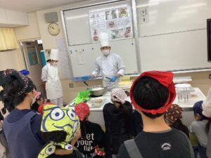 12月10日(水)に3人の職人の方に来ていただき、物づくり体験をしました。 「洋菓子」「貴金属」「大工」の3つのグループに分かれ、職人の方からお話を聞いたり、 実際に物づくりを体験したりしました。 間近で見る職人の技に、子どもたちは驚きの声をあげていました。 今回の体験活動を、自分の将来に繋げていってほしいです。 (下の写真は洋菓子体験の様子です。)